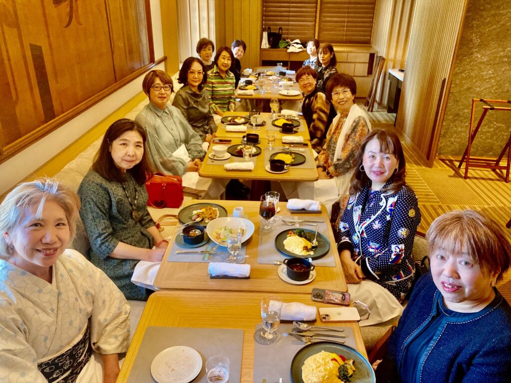 鑑賞前のランチ会は、今年の3月にオープンしたばかりの帝国ホテル京都のレストラン「弥栄」で。人数が多いので、事前にメールで打ち合わせをさせていただいていたおかげで、お料理をスムーズに提供していただき、お茶席の時間にも慌てることなく余裕をもって会場に移動することができました。