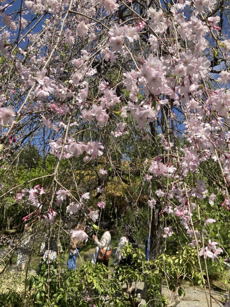 ホテルと会場がお隣同士ということで、いつもより早めに会場に入ることができたおかげで、今年はお茶席前にゆっくりお庭を歩くことができて、まだお花が残っている枝垂れ桜や八重桜を見ることができました。そして、お庭の散策後に案内されたお茶席は、舞妓さんのお点前を目の前で拝見できる一番前のお席でした!毎年、遠くから眺めるだけだった舞妓さんのお点前を間近で見ることができて幸せでした。
