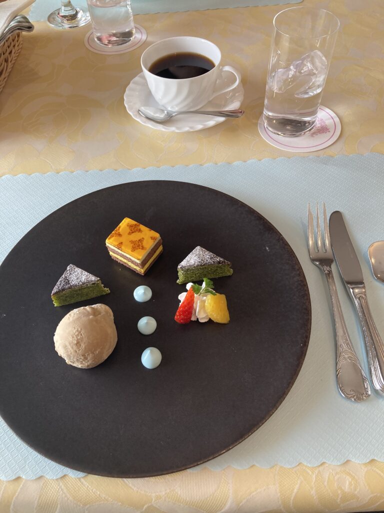 私はこの日、月組のバウホール公演を観劇することになっていたため、ランチ会の後はご一緒させていただいた会員さんとフェリエでお茶をしながら開演をまつことに..。星組公演をイメージした公演デザートが可愛くて美味しかったです。フェリエのスタッフの方の説明によると、ありちゃんのモッズファッションをイメージしたデザートなのだそうです。くすのきの公演ランチの幕内すみれにも、ありちゃんの出身地やありちゃんの好物をイメージしたお料理がありました。大劇場でのお食事やデザートにはレストランのシェフや板前さんの生徒さんへの愛が込められているんだな、と改めて感じました。